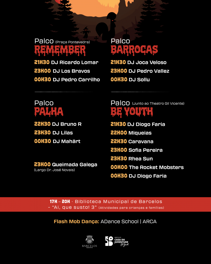 Após o êxito das edições anteriores, a Noite Preta de Halloween está de volta ao Centro Histórico de Barcelos. Assim, ao anoitecer de sexta-feira, dia 31 de outubro, Barcelos junta ao ambiente de terror muita música e animação.