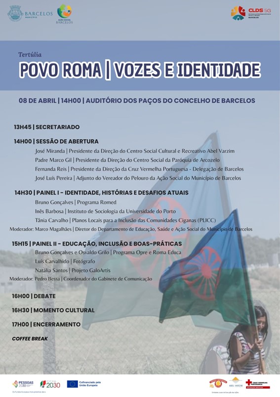 O Município de Barcelos, no âmbito do Projeto CLDS 5G, promove, no dia 8 de abril, pelas 14h00, a tertúlia “Povo Roma: Vozes e Identidade”, a realizar no Auditório dos Paços do Concelho.
