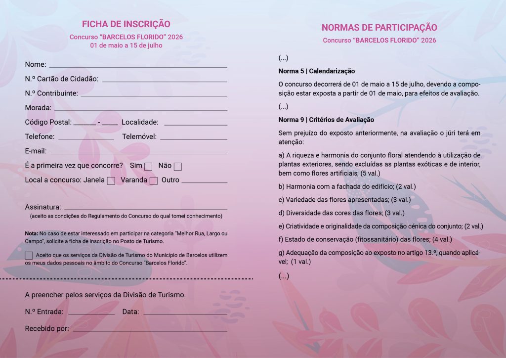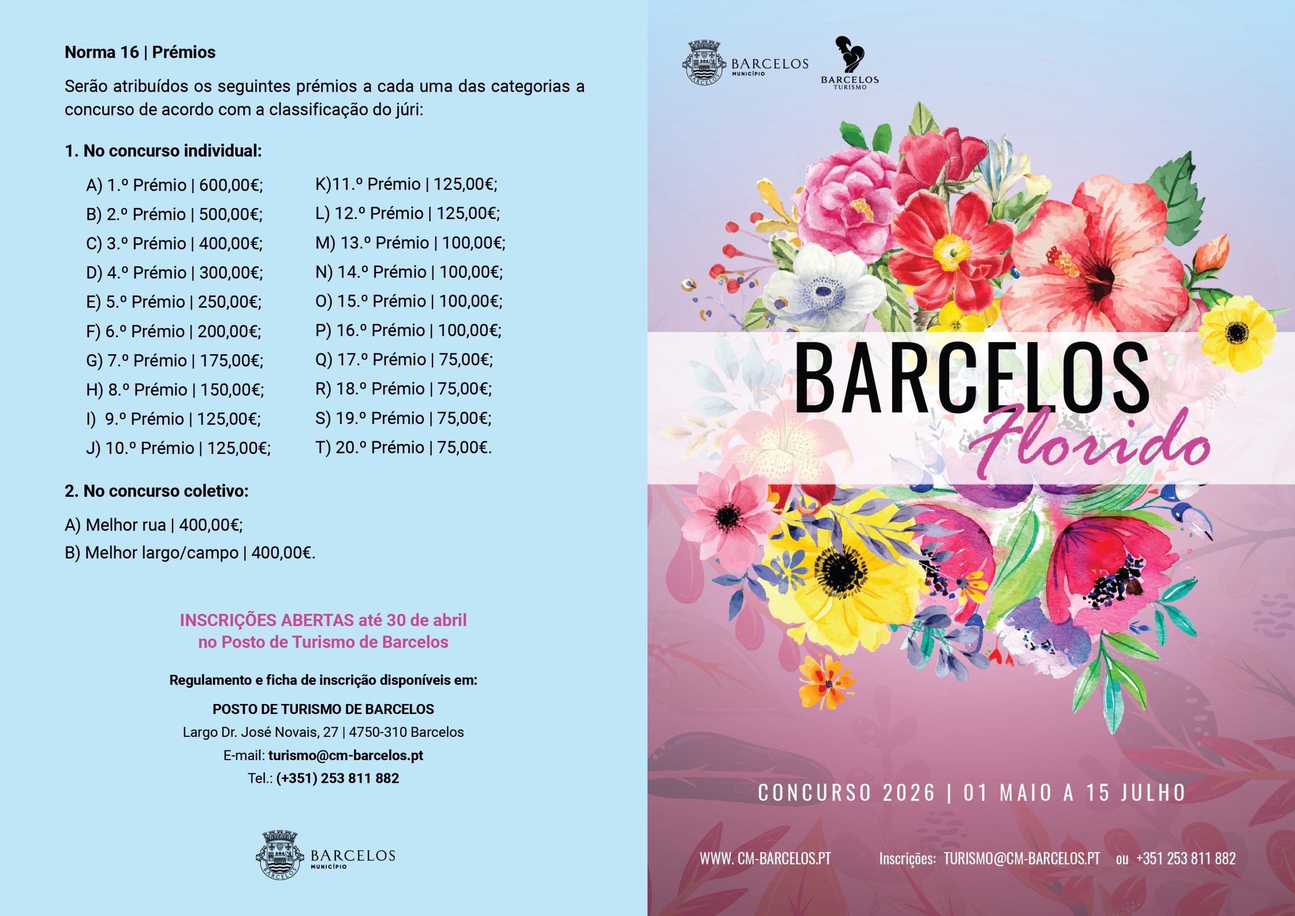 Estão abertas, até ao dia 30 de abril, as inscrições para o Concurso Barcelos Florido, que decorre entre 1 de maio e 15 de julho.
